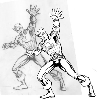 First is the wonderfully grubby pencil drawing of Shakara. Then the background tech stuff that might be ships or a space station and finally the inked version of Shakara.